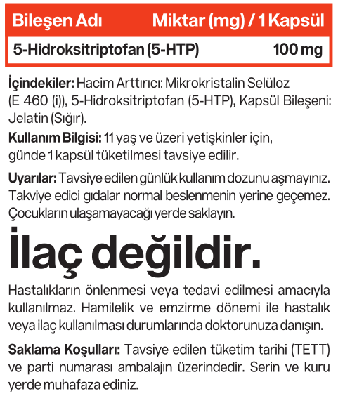 5-HTP (5-Hidroksitriptofan) : 100 mg