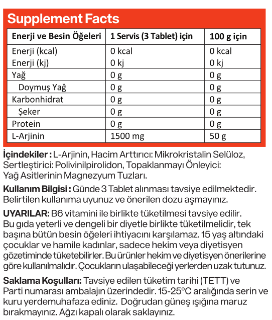 Kullanım şekli : Yetişkinler için günde 3 tablet önerilir.